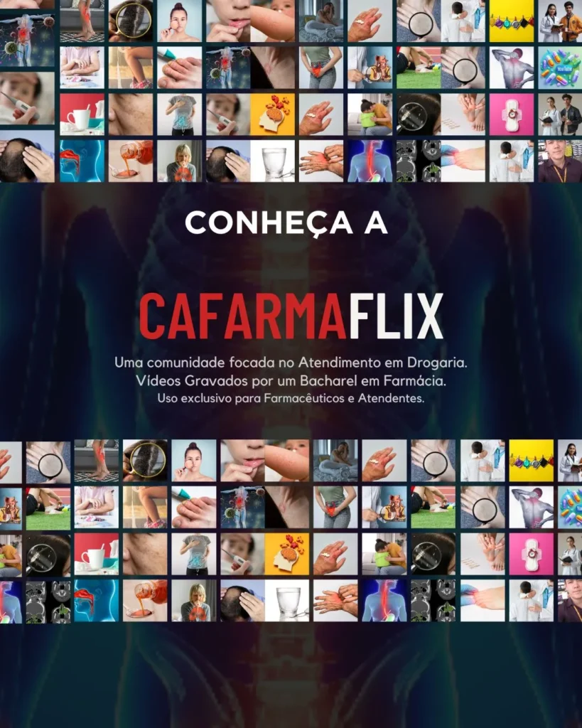 Na CAFARMAFLIX, você aprofunda exatamente o tema deste artigo, entendendo o raciocínio por trás do protocolo, os detalhes que realmente fazem diferença no atendimento e como aplicar tudo isso com segurança no dia a dia da farmácia. Os conteúdos contam com fotos reais dos produtos, facilitando a memorização, e com protocolos organizados segundo o Princípio de Pareto, onde 20% do esforço geram 80% dos resultados no atendimento.